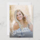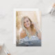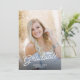 Este convite para festa de formatura de fotos apresenta uma foto vertical de cheio com uma sobreposição de texto de escrita manual de classe. O backside oferece uma segunda foto e texto personalizado para seus detalhes de convite e festa.