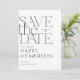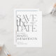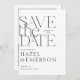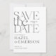 Embarque as vibrações livres com nossa tipografia ousada estilo boho foto moderna minimalista salve o cartão de data! Possui design de tipografia serifônica moderna. Personalize-o com seu nome, data, detalhes e uma foto que captura sua história de amor. Que a sua viagem comece da forma mais na moda possível! Design por Moodthology Papery