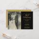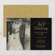 Personalize com a sua foto de casamento favorita e os detalhes da sua celebração especial de 50 anos de casamento dourado em tipografia dourada elegante em um fundo preto. O verso apresenta confetes de coração de amor dourado. Concebido por Thisisnotme©