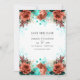 Turquesa e coral rosas em aquarela e folhagem iridescente salvar a data do casamento projetado para ser rapidamente e facilmente personalizado para os detalhes do seu evento.