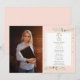 Com delicadas folhas de verde em aquarela sobre um fundo rosa encabulado, este convite de formatura em direito pode ser personalizado com a foto do formando e detalhes da celebração. Criado por Thisisnotme