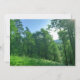 Fotografia de Paisagem Florestal. Paisagem verde pacífica da floresta em junho com vegetação verde, árvores verdes e luz do sol matinal.