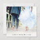Convite quadrado de casamento ou fuga elegante e sofisticado para pequenos casamentos e anúncio de recepção. A frente apresenta "Festa Feliz para Sempre" em uma mistura de tipografia simples e uma escrita moderna. Personalize seu anúncio e convite e adicione seus nomes em uma escrita semelhante a uma assinatura. O verso apresenta sua foto de casamento favorita, seus primeiros nomes e data.