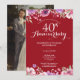 Com delicadas rosas em aquarela acima e abaixo das informações personalizadas do seu aniversário de casamento de rubi de 40 anos em tipografia branca chique. O verso apresenta sua foto de casamento favorita ou deixe em branco. Criado por Thisisnotme©