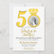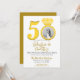 Uma bela festa de aniversário de 50 anos ou convite de celebração. Um fabuloso design de fotografia de efeito ouro e cinza com muito espaço para os detalhes do seu partido - perfeito para anunciar uma celebração para uma festa de cinquenta anos.