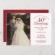 Personalize com a sua foto de casamento favorita e os detalhes especiais da celebração do 40º aniversário de casamento rubi em tipografia vermelha elegante. O verso apresenta confetes de coração de amor rubi. Concebido por Thisisnotme©