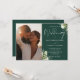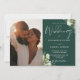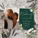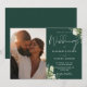 Este convite de casamento elegante com folhagem floral verde esmeralda pode ser personalizado com sua foto especial e informações em tipografia sofisticada. Criado por Thisisnotme©