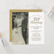 Personalize com sua foto de casamento favorita e os detalhes da sua celebração especial do aniversário de casamento de ouro de 50 anos em tipografia dourada chique. O verso apresenta confetes de coração de amor dourado. Projetado por Thisisnotme©