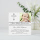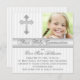 Convide todos os seus amigos e família para a primeira Comunhão Santa da sua filha com este bonito e branco e prateado puro e listrado Primeiro convite da Santa Comunhão com uma Cruz de prata e uma área de modelo para você carregar a foto da sua filha. A escolha do papel e todo o texto é personalizável. Se você precisar de qualquer outro item nesse estilo de design, como cartões de agradecimento, cartões de agradecimentos de fotos ou qualquer outro item para fazer com que este dia especial seja especial, envie um e-mail com sua solicitação para niteowlstudio@gmail.com.