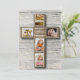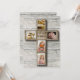 A ilustração da Moderna Primeira Comunhão, com uma cruz de madeira, com imagens relacionadas à comunhão, num fundo rústico. Facilmente para alterar as duas fotos de amostra do comunicante com suas próprias fotos para personalizar o produto.