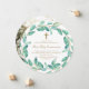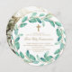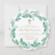 O Eucalipto Botânico sai com cruzado religioso Primeiro Sagrado Convite Fotográfico Comunitário em Verde e Branco Sage com Dourado Texto e Cruz de Cor.