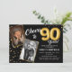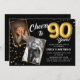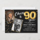 Convite Fotográfico de 90 de Aniversário para Balões Dourados Pretos
