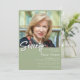 Foto do moderno minimalista sábio verde e convite de aniversário branco para uma festa de aniversário divertida. A idade pode ser alterada. Este convite é simples e elegante, convite de aniversário para homens e mulheres. A cor de fundo verde e branca pode ser alterada para qualquer cor de sua escolha usando a ferramenta design.
