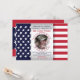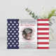 convites de festas de fotos de soldados militares da bandeira patriótica - Foto de soldado ou militar centrada em um círculo com estrelas vermelhas e azuis na fronteira de um fundo metálico falso de prata. Bordado à esquerda com estrelas de bandeira americana e à direita com listras vermelhas e brancas de bandeira americana. Ele lê 'Por favor, junte-se à nossa celebração do herói de casa de boas-vindas' em azul com classificação e nome personalizados abaixo em um script de cor vermelha e informações de boas-vindas do partido doméstico abaixo em vermelho e azul correspondentes. A parte de trás coordena o padrão das estrelas azul e branca sobre fundo vermelho correspondente.Nota: Todas as imagens são impressas. Não é metal real. convites de festas militares de boas-vindas. Clique na opção Personalizar para alterar cores de texto, tamanho e estilos de fonte. Visite nosso compro online Zazzle.com/angela65 para ver mais convites militares para fotos.