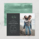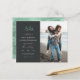 Esta design de casamento minimalista é perfeita para aquele casal moderno que procura por algo único. Este convite inclui uma ramificação de aquarela com uma magnífica tipografia moderna por baixo e a sua própria fotografia personalizada no lado direito contra um fundo de cinza escura. No verso, há uma lavagem com aquarela verde para complementar perfeitamente a frente. Clique no botão azul "personalizar" para adicionar seus próprios detalhes e ver seu design vivendo na sua frente!