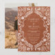 Traga o charme de uma festa mexicana para o seu grande dia com este elegante convite de fotos de casamento. Apresentando detalhes do papel picado, tons de terracota e espaço para sua foto de noivado favorita, é a maneira perfeita de convidar convidados para uma celebração romântica e colorida. Correspondendo itens em nossa loja Designs do Partido Cava.