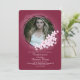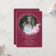 Um belo e desenhado conjunto de cerejeiras rosa floresce a janela de fotos redondas deste convite moderno. Adequado para qualquer idade e a maioria das celebrações. (FP)