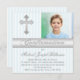 Convide todos os seus amigos e familiares para a Confirmação do seu filho com este convite de confirmação puro e simples, branco e azul esbranquiçado, com uma Cruz de cinza prateada e uma área de modelo para que você carregue a foto do seu filho. A escolha do papel e a maioria do texto é personalizável. ****POR FAVOR, OBSERVE que o texto Cruz, banda central e TODOS são impressos em formato plano, sem nenhum efeito em relevo ou em relevo. Se você precisar de outros itens neste estilo de design, como cartões de agradecimento, cartões de agradecimentos de fotos ou qualquer outro item para tornar este dia especial extra, envie seu pedido por e-mail para niteowlstudio@gmail.com.