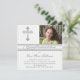 Convide todos os seus amigos e familiares para a Confirmação da sua filha com este convite de confirmação branco e listrado de prata puro e bonito com uma Cruz de cinza prateada e uma área de modelo para que você carregue a foto da sua filha. A escolha do papel e todo o texto é personalizável. Se você precisar de outros itens neste estilo de design, como cartões de agradecimento, cartões de agradecimentos de fotos ou qualquer outro item para tornar este dia especial extra, envie seu pedido por e-mail para niteowlstudio@gmail.com.