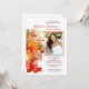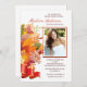 Este chá de panela elegante inclui um buquê de folhas de cor de outono amarradas com um arco vermelho. A janela de fotos está duplamente enquadrada e pronta para segurar sua foto favorita. Perfeitamente adequado como convite de aniversário também.O convite é fácil de personalizar com seu texto, fonte, cor da fonte e escolha de seis tipos de papel.