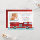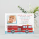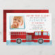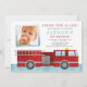 Convites Fotográficos para Festas de aniversário de Firecaminhão. Azul e vermelho de aquarela. Fácil de personalizar o design, adicione a foto do seu pequeno e o texto personalizado.