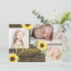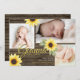 Girassóis amarelos e madeira de celeiro rústico três fotos, anúncio de nascimento de bebê para novo bebê ou texto de edição, como preferido para qualquer ocasião.