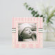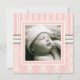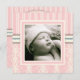 Um design de damascos e listras em um esquema de cor rosa e creme macio e feminino. Apresenta uma foto do seu anjo na frente e é adornada com uma elegante cruz de coordenação atrás, onde cada área de texto é personalizável. Faz um belo convite para a família e amigos para o Batismo da sua filha ou para a celebração de Natal.