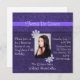 O convite para o feitiço roxo escura, perfeito para a Quinceañera da sua filha. Uma fita de lavanda, no topo, diz Fiesta De Quince, em texto branco. Uma área fotográfica é coberta por duas flores de lavanda, com diamantes em forma de coração decorando-os, e adicione sua própria fotografia aqui. Todo o texto está em branco e totalmente personalizável para atender às suas necessidades.
