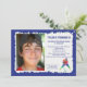 Um convite tradicional com um jogador de hóquei em forma geométrica e uma janela fotográfica com um quadro azul grunge. Perfeito para qualquer fã de hóquei.