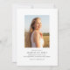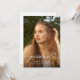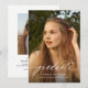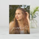 Este anúncio de graduação apresenta uma grande foto frontal de cheio com uma cobertura de script de caligrafia e uma segunda foto no verso, juntamente com seu convite para festa de formatura. Os elementos traseiros podem ser removidos clicando no botão para editar mais detalhes.