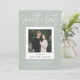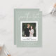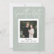 Este convite moderno de save the date para casamento é um design casual e atencioso para casais que desejam anunciar seu noivado com estilo. A foto de noivado escolhida é exibida na parte central e frontal em uma moldura de foto estilo instantâneo e com texto personalizado em estilo manuscrito. Este é um modelo de save the date para casamento totalmente personalizável em verde sage claro com uma sobreposição sutil de textura de tecido falso. Todas as cores e textos podem ser alterados na ferramenta de design - faça todas as alterações que desejar e torne este convite de save the date exclusivamente seu!