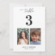 Decorre sua mesa de casamento com este cartão, apresentando fotos de noiva e noiva e texto personalizado de sua escolha. Adicione facilmente seus próprios detalhes clicando na opção "personalizar".