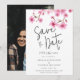 Uma explosão de flores de cerejeira da primavera, pintada em aquarela, decora este convite de casamento moderno e divertido, mas clássico e elegante, simples e sofisticado. Perfeito para noivas que amam designs clássicos e atemporais, mas também modernos e divertidos, casamentos no jardim, casamentos de primavera ou verão e flores de cerejeira. Também para os amantes do estilo boho chic e para casamentos românticos ou rústicos. Modelo para uma foto de noivado (ou qualquer outra de sua escolha) do casal feliz no verso.