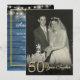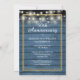 Um convite de aniversário de casamento chique e perfeito para qualquer aniversário. Você pode personalizar a cor para combinar com a celebração do seu aniversário. O verso apresenta luzes de corda e um fundo de painéis de madeira azul rústico. Criado por Thisisnotme©