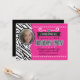 Convite Fotos de Aniversário de Meninas Rosa Quente e Zebr