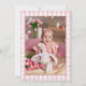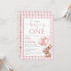 Este convite de aniversário de 1 ano encantador apresenta um adorável coelhinho segurando balões, e um fundo de xadrez rosa. O verso apresenta a foto especial da aniversariante. Projetado por Thisisnotme©