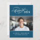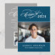 Celebre seu graduado com este convite de festa de formatura elegante, apresentando um script de caligrafia "Turma de" com o ano em um fundo azul clássico rico ao lado de um retrato de formatura enquadrado por finos acentos de linha. O verso cinza apresenta um belo título de script "Celebre" com um segundo espaço para foto e todos os detalhes da sua festa. Texto totalmente personalizável em ambos os lados.