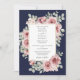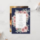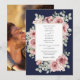 Um convite de casamento moderno e elegante com rosas florais bonitas e tipografia sofisticada com um fundo azul-marinho e sua foto especial no verso. Criado por Thisisnotme©