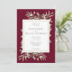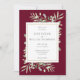 Com delicadas folhas verdes em aquarela sobre um fundo burgundy, este convite de casamento botânico elegante pode ser personalizado com sua foto e informações especiais do dia do casamento. Desenhado por Thisisnotme©