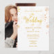 Com tipografia elegante com delicados flocos de neve dourados caindo sobre seus nomes personalizados, data especial e detalhes do evento de celebração do casamento, e sua foto especial no verso. Projetado por Thisisnotme©