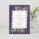 Com delicadas folhas de aquarela em um fundo roxo elegante. Este convite de casamento botânico elegante pode ser personalizado com sua foto e informações do dia do casamento em tipografia moderna. Desenhado por Thisisnotme