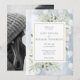 Com delicadas folhas de aquarela em um fundo de inverno com flocos de neve caindo. Este convite de casamento de inverno elegante pode ser personalizado com sua foto e informações do dia especial do casamento em tipografia moderna e sofisticada. Criado por Thisisnotme©