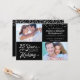 Convide seus convidados com este convite de aniversário de 25 anos de casamento em preto e prata com tipografia retrô que diz 25 ANOS EM CONSTRUÇÃO e integra o ano do casamento como parte do design. Inclua fotos do ENTÃO e do AGORA para um convite divertido com um visual do passado. Os detalhes do convite de festa estão no verso.