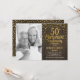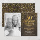 Convite de aniversário de casamento de 50 anos surpresa rústica com foto. Design elegante com padrão de madeira rústica e dourado brilhante falso. Apresenta fonte de tipografia script e confetes. Perfeito para uma celebração de aniversário de cinquenta anos dourada e sofisticada. Personalize com seus próprios detalhes. Mensagem-me se precisar de ano personalizado. Convites impressos da Zazzle ou modelo digital para impressão instantânea.