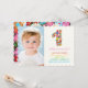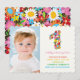 Convite Fotos do Primeiro Aniversário da Bebê com Flores d