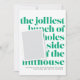 Um cartão ousado, moderno e divertido desenhado em torno de uma das minhas tradições familiares. Atualmente definida como um verde alegre, a cor de fundo pode ser personalizada para permitir qualquer texto colorido atrás da foto.