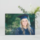 Celebre seu graduado com este convite de festa de graduação elegante que apresenta um retrato completo do formando com a palavra "graduado" em caligrafia branca e o ano de conclusão na frente. O verso apresenta um belo título "celebre" em caligrafia florida com todos os detalhes da festa em uma mistura refinada de caligrafia e tipografia serifada em um fundo creme limpo. O texto totalmente personalizável em ambos os lados torna a personalização fácil.