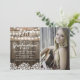Adentre o charme rústico do campo enquanto apresentamos nossos convites de festa de formatura. A sincronia soulful de um fundo de barril de carvalho de celeiro rural, as luzes cintilantes de cordão de luzes e o delicado bebê's breath se equilibram lindamente com a grafia contemporânea em branco, tudo encenado em torno de uma foto atraente do formando. Celebre esse marco com um toque de encanto rural, marcando o ano da turma nesses convites requintados.