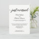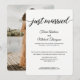Simples, moderno, motivo preto e branco da marinha e caligrafia "Recém-Casados". Personalize este convite de recepção de casamento com os nomes dos noivos e todos os detalhes sobre a troca de votos e festa de recepção de casamento. Este design de layout chique e elegante é fácil de personalizar com uma foto do seu dia especial para compartilhar.