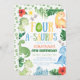 Make your little dino-lover's 4th birthday roar-some with our Four A-Saurus Dino Invitation! Featuring colorful dinosaurs and a fun design, this invite is perfect for your little one's special day.